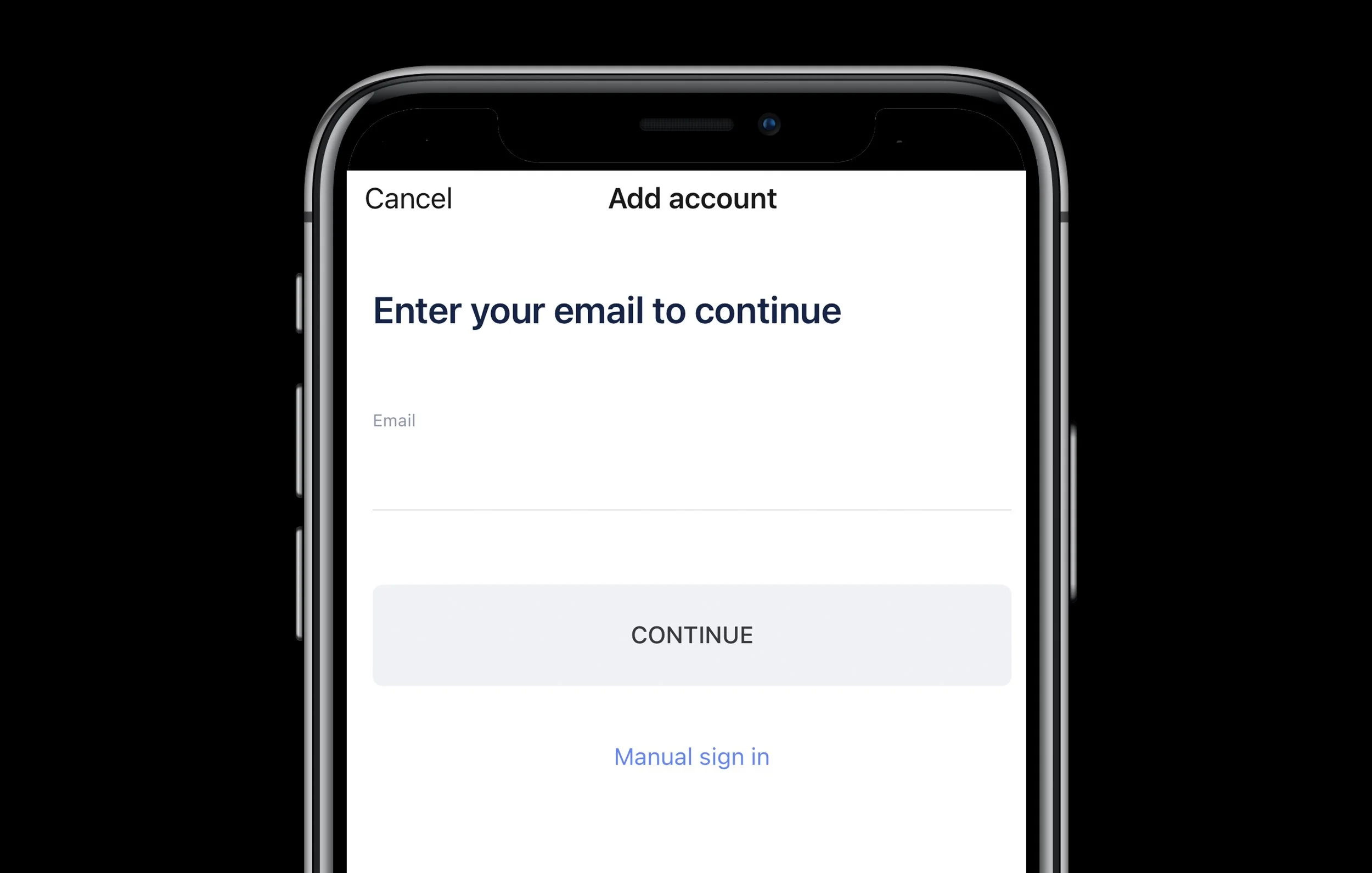 Go to app: Click on “Add Account”, enter your email